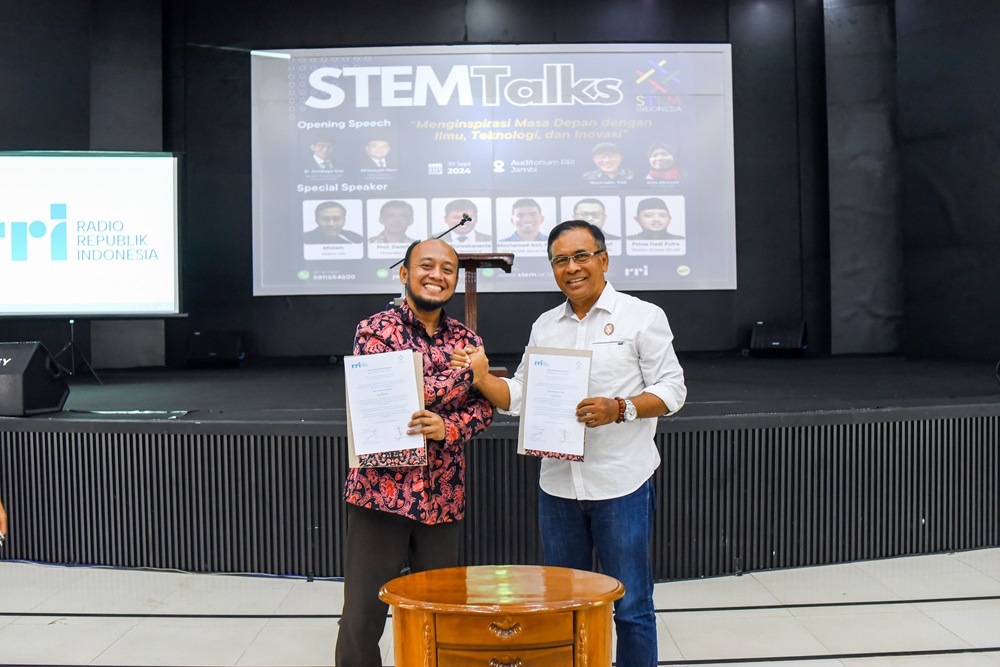 Jambi, 30 September 2024 – Dalam upaya meningkatkan literasi teknologi di Indonesia, STEM Indonesia dan RRI (Radio Republik Indonesia) resmi menjalin kolaborasi strategis melalui penandatanganan nota kesepahaman (MoU) yang berlangsung di acara STEMTalks. Kerjasama ini bertujuan untuk menyebarluaskan pengetahuan dan pemahaman tentang teknologi dan inovasi di seluruh pelosok tanah air.